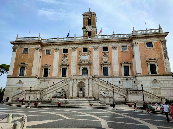Stately 15th-century structure in the Capitoline Museums, featuring statues, art & frescos.