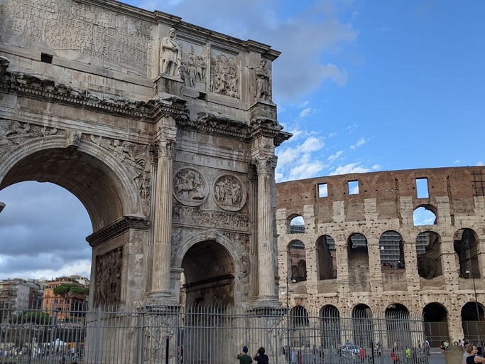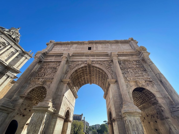Triumphal arch with inscriptions & sculptures honoring the military victories of Emperor Titus.