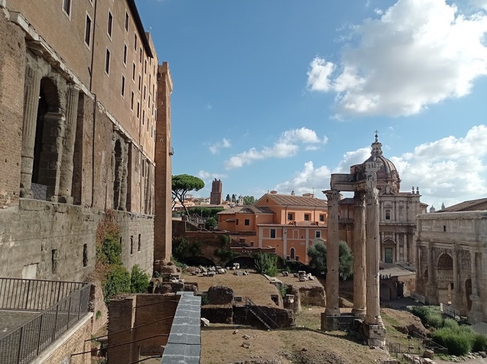 The Roman Forum, once a vibrant hub of political, religious, and commercial life, features ruins of temples, monuments, and markets. Spanning from the Arch of Titus to Capitoline Hill, this grand city center reflects the heart of ancient Rome, with structures dating back 2,000 years.