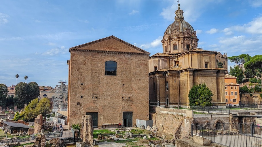 Largely intact senate house built in 44 BC, though converted into a basilica in the 7th century.