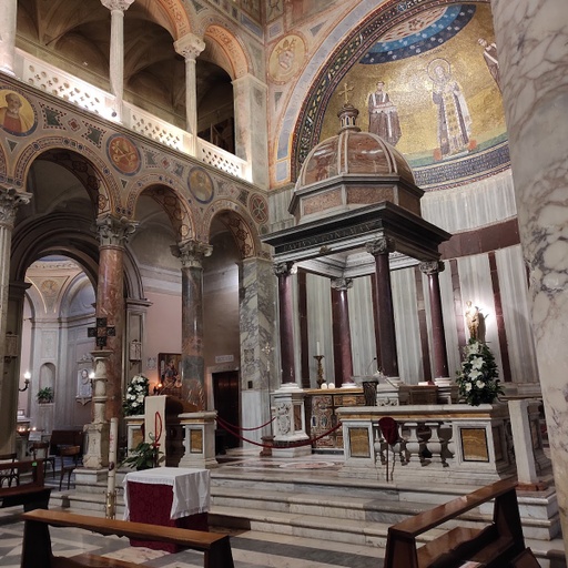 Elegant basilica restored by Bernini in the 1600s, featuring masterpieces by Caravaggio & Raphael.
