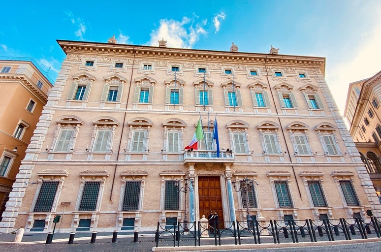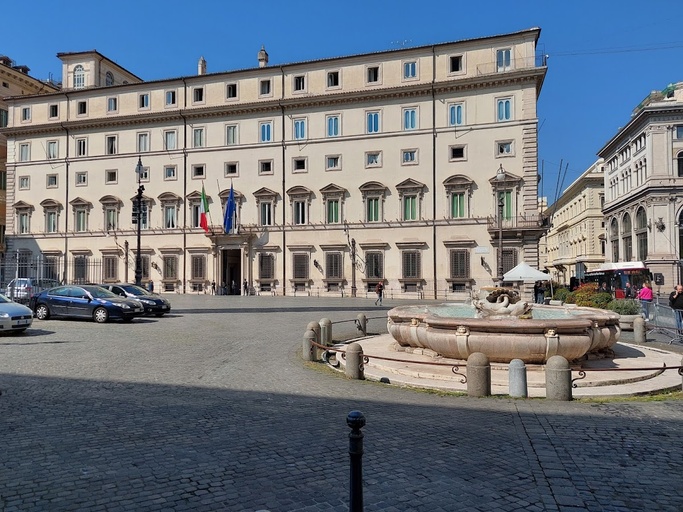 Seat of the Italian senate, housed in a former 15th-century Medici palace with later Baroque facade.
