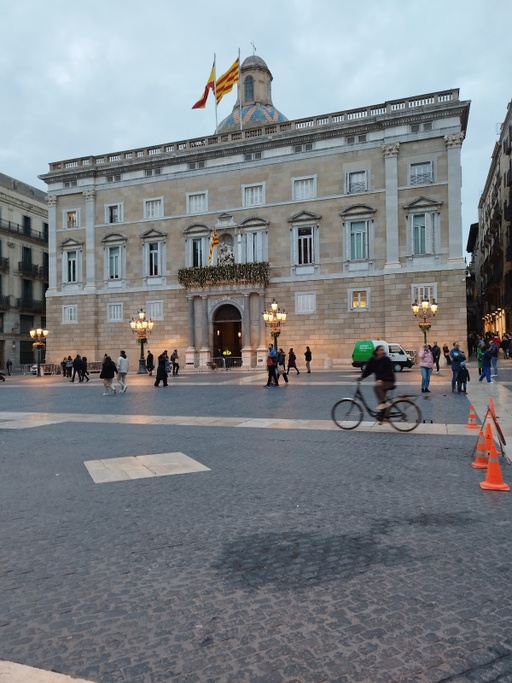 Landmark city square & gathering point, home to the town hall & the Palau de la Generalitat.