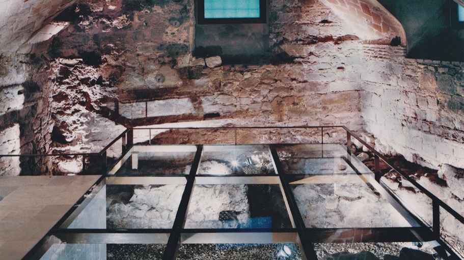 Barcelona's history museum in a medieval setting, featuring remains of Roman streets & buildings.