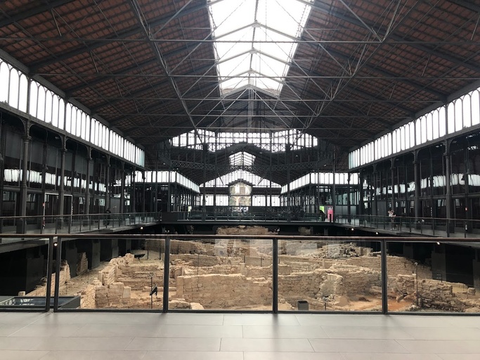 Event & cultural space in a restored former market, with excavated city ruins from 1700s on display.