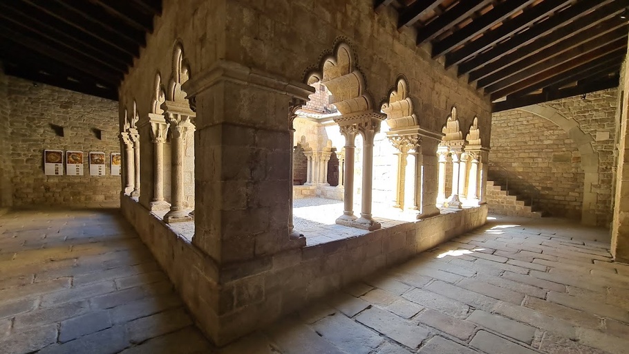 Cross-shaped Romanesque monastery known for its compact cloisters with elegant Moorish arches.
