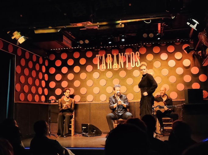 Food & sangria served in a classic flamenco-inspired spot with traditional live music & dance shows.