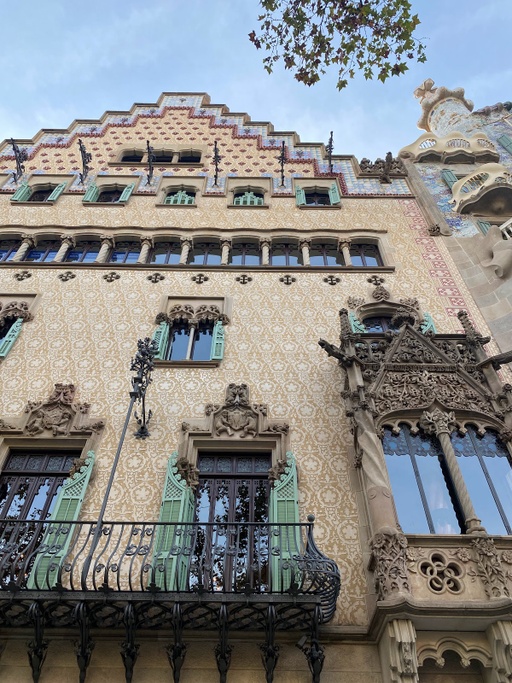 Colorful modernista house fusing Catalan & Flemish styles, decorated with quirky animal sculptures.
