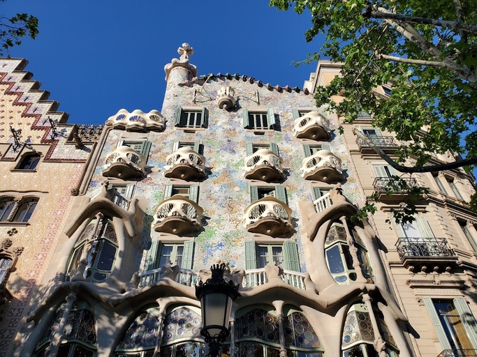 Casa Batlló, a masterpiece by Antoni Gaudí on Barcelona's Passeig de Gràcia, is famed for its modernist design, vibrant mosaic facade, and unique features like the Gaudi Dome and a central light well. Originally remodeled for businessman Batlló, it showcases Gaudí's artistic freedom and innovative architecture.