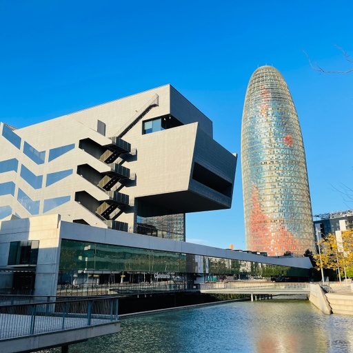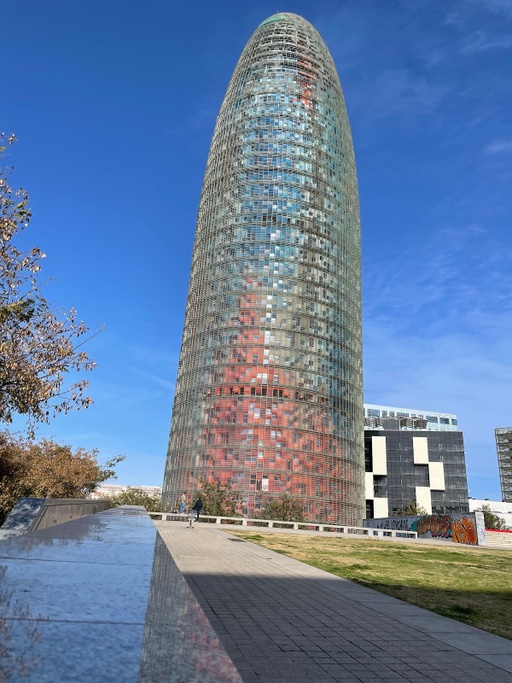 High-tech skyscraper designed by French architect Jean Nouvel & inspired by images of geysers.