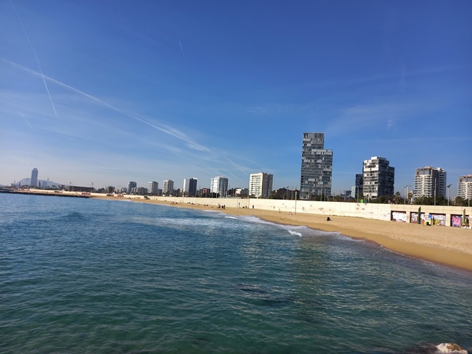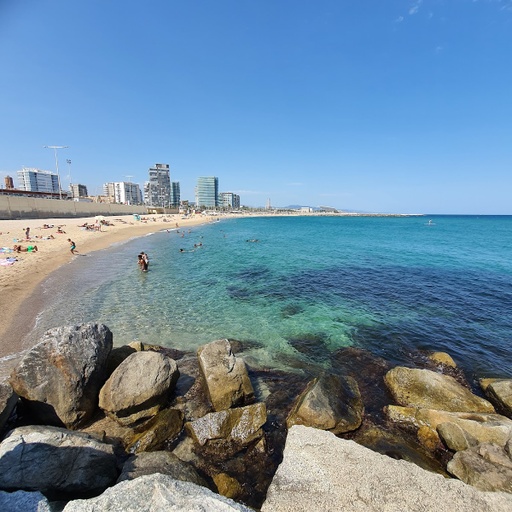 This clothes optional city beach features a narrow strip of sand close to the city center.